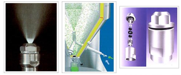 壓力式霧化產生的霧化液滴粒徑分布更窄,更均勻,且得到的噴霧干燥粉具有更高的堆積密度 ,更適用于高脂肪含量、粗顆粒、期望干燥粉流動性好的物料的霧化。這些制品包括:乳制品、咖啡、洗衣粉、肥皂粉、陶瓷、催化劑以及許多無機鹽類。對于低粘度的料液,也采用壓力式噴嘴較適宜。